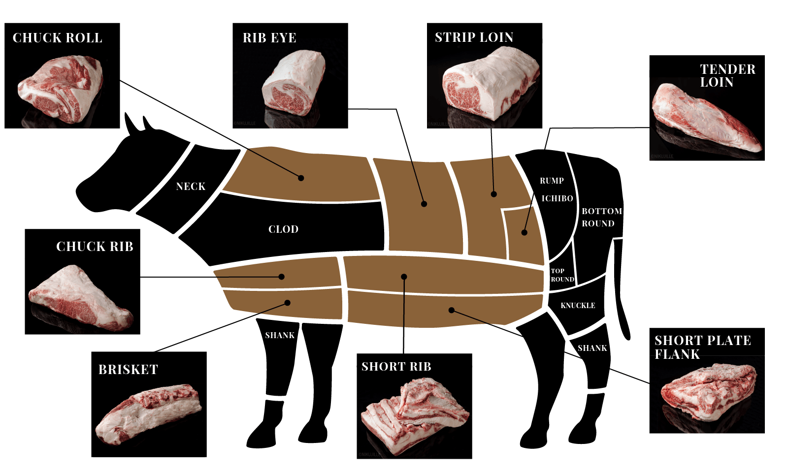 | Plate set | Chuck rib 10kg Brisket 26kg Short rib 26kg Flap meat 9 kg Short plate 28 kg Flank 8 kg Inside skirt 1 kg |