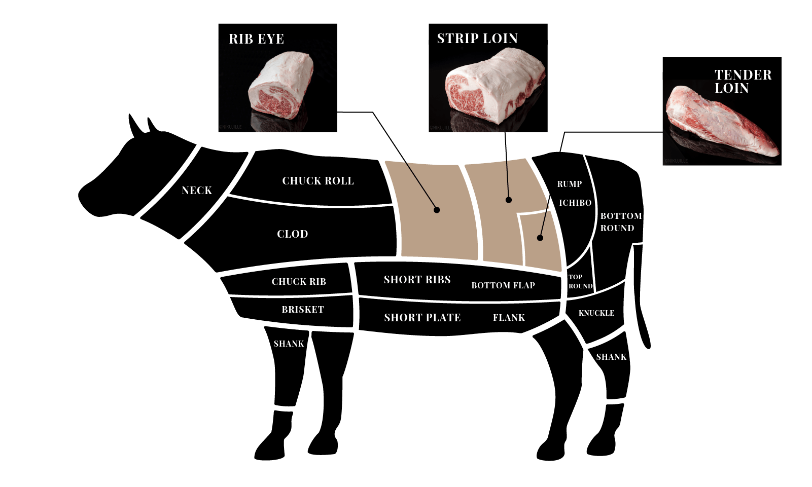 | Loin Three Parts set | Tender loin 10kg Strip loin 28kg Ribeye 16kg |